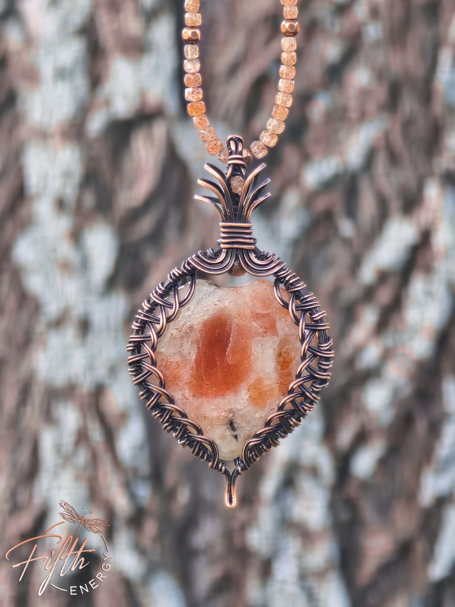 Celebrate love and intention with this one-of-a-kind heart Sunstone copper necklace, featuring a natural, heart-shaped Sunstone. The pendant is suspended from a 17-3/4 inch long beaded hand-strung genuine Sunstone cord that adjusts for a preferred fit, making it ideal for everyday wear or special moments. Handcrafted with U.S. made copper and carefully sealed to resist tarnish, this Sunstone copper necklace retains its rich, radiant finish while being gentle on skin and clothing. Versatile and full of soulful charm, this heart Sunstone pendant can also be worn on many of your favorite chains or cords for a look that feels uniquely yours.