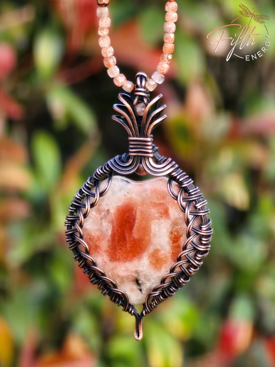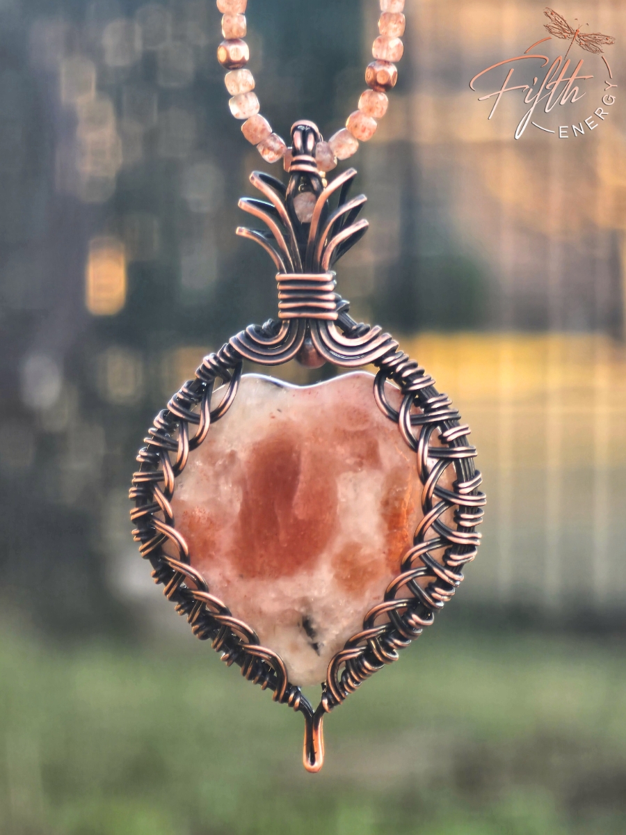 Heart Sunstone Copper Necklace is Handmade, American Made, Made in the USA, Small Business, Woman owned.