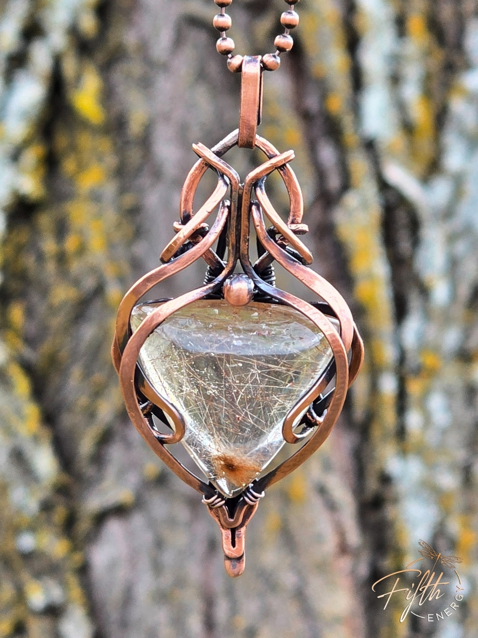 Rutilated Quartz Copper Encased Necklace is handmade and American made, in the USA.