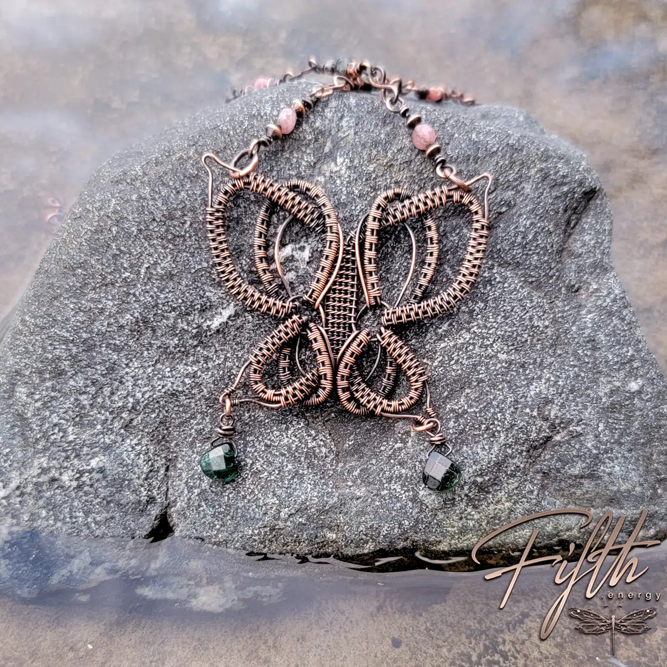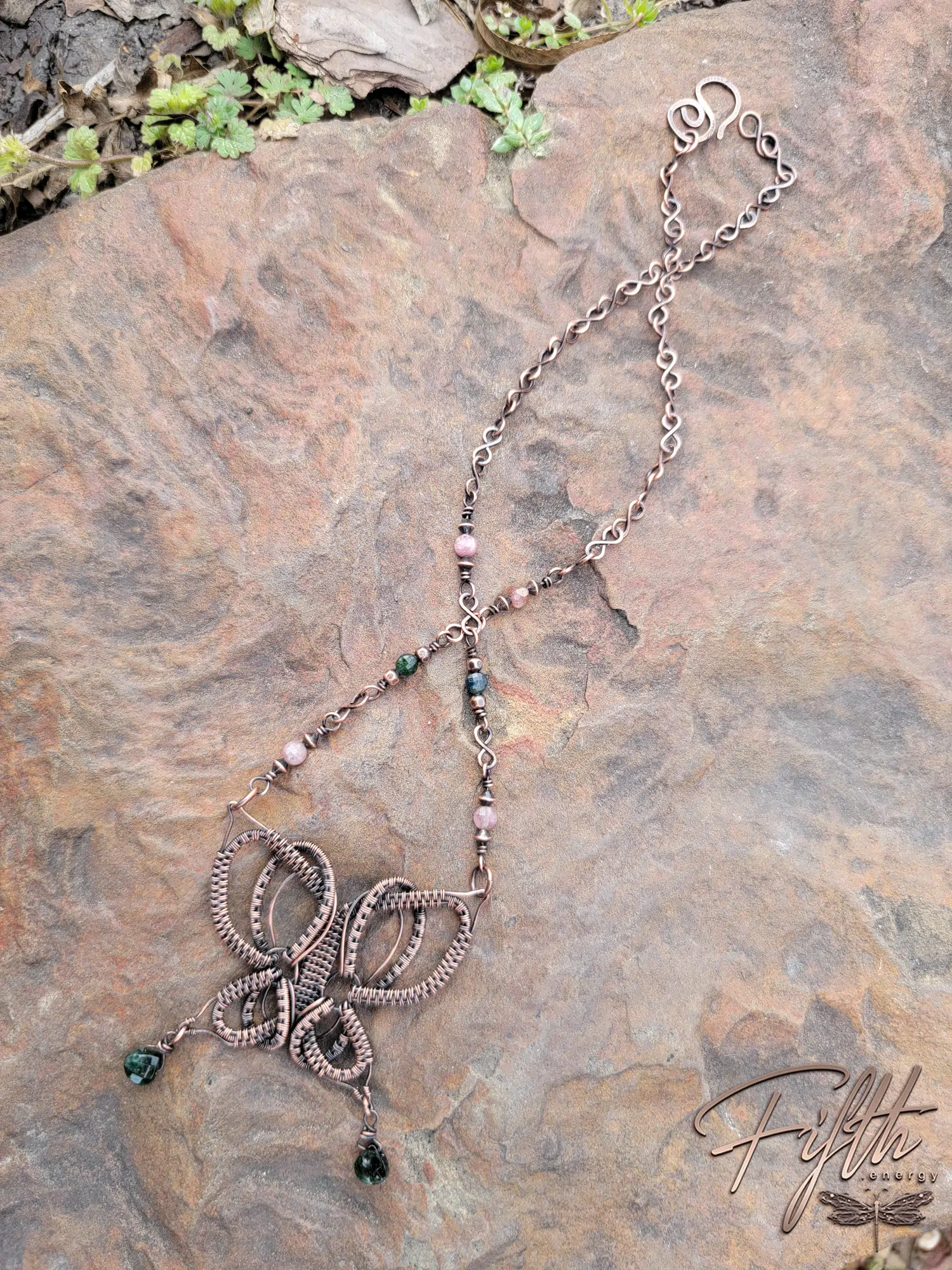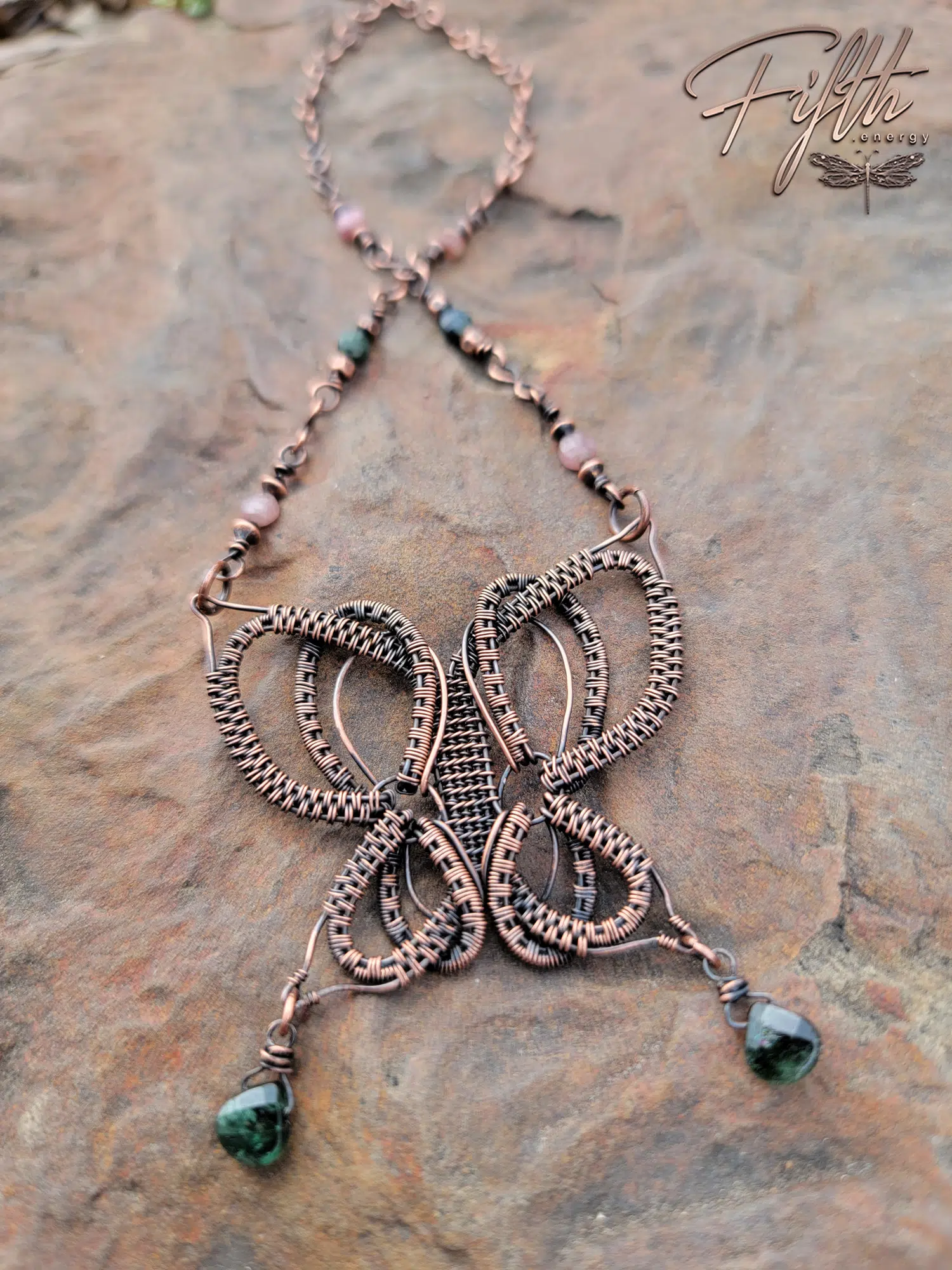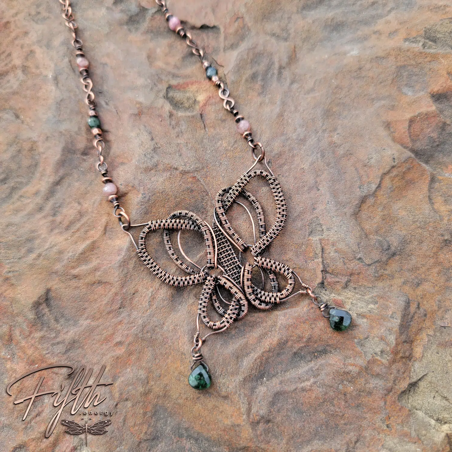 Tourmaline Copper Butterfly Necklace
